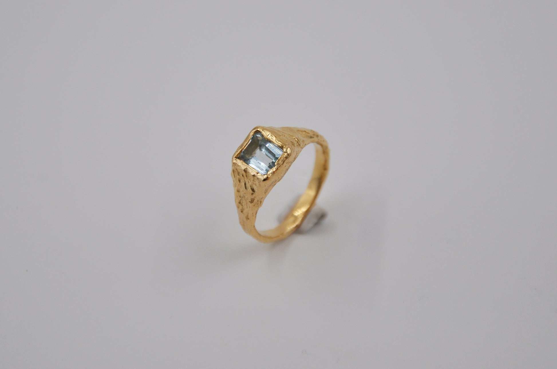 טבעת שמזכירה שבר של סלע עתיק, חצוב מתחת לאדמה. חומר גולמי, מלא זיכרונות מעומק האדמה, ובמרכזו אבן חן מלוטשת. הניגוד בין פני השטח הגסים לאבן המסותתת יוצר שילוב עוצמתי של משהו עתיק עם יופי שנוצר גם הוא עמוק באדמה, אך גולף וטופל בזמנים מודרניים