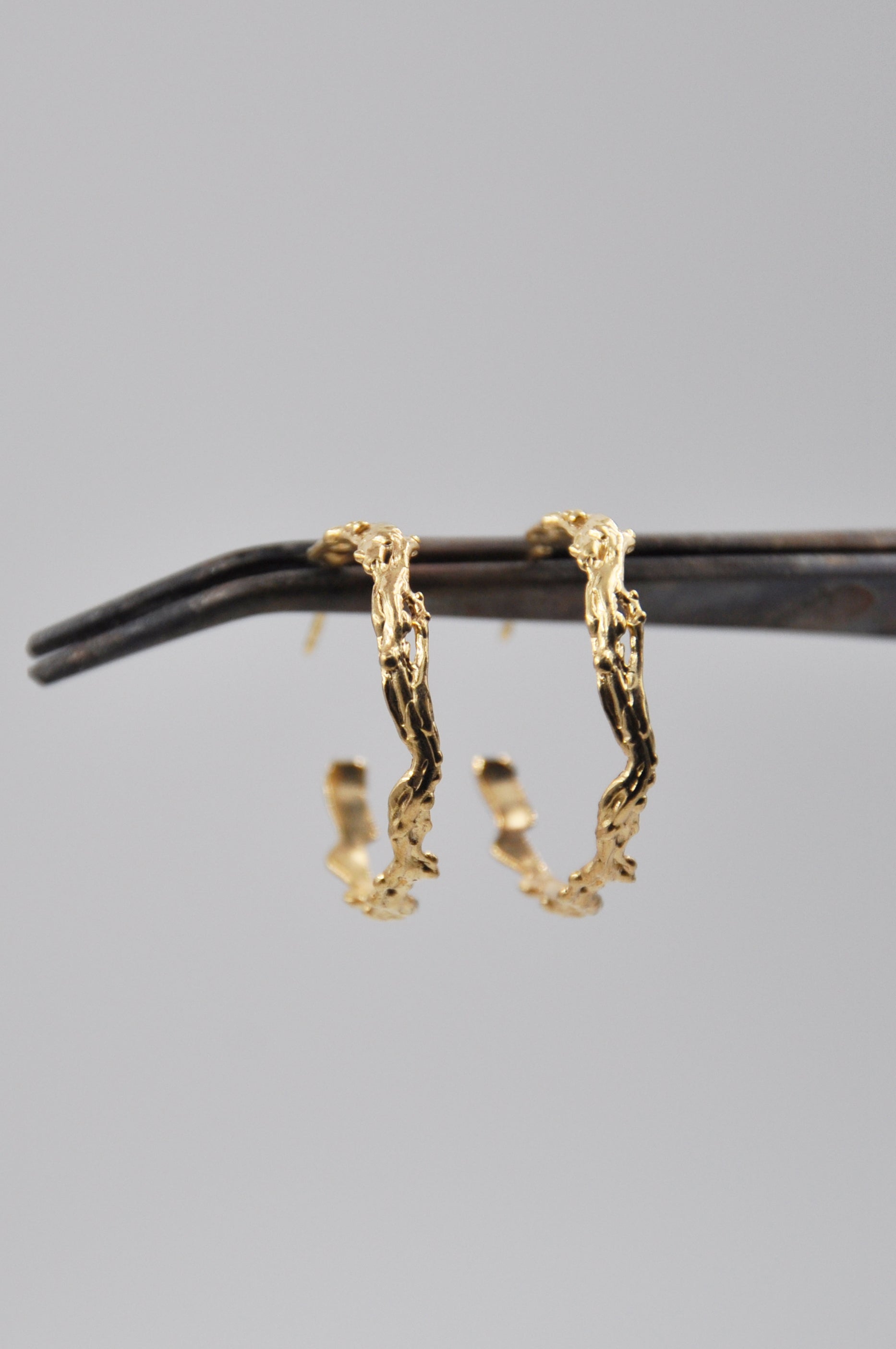 חישוקים עדינים ואדמתיים. המרקם האורגני שלהם דומה לעורקים של עץ, לעוצמה השקטה של משהו שהשתרש עם הזמן. הם מסמלים כמיהה לקרקע ולחיבור למעגל של השקט והפשטות של הטבע.