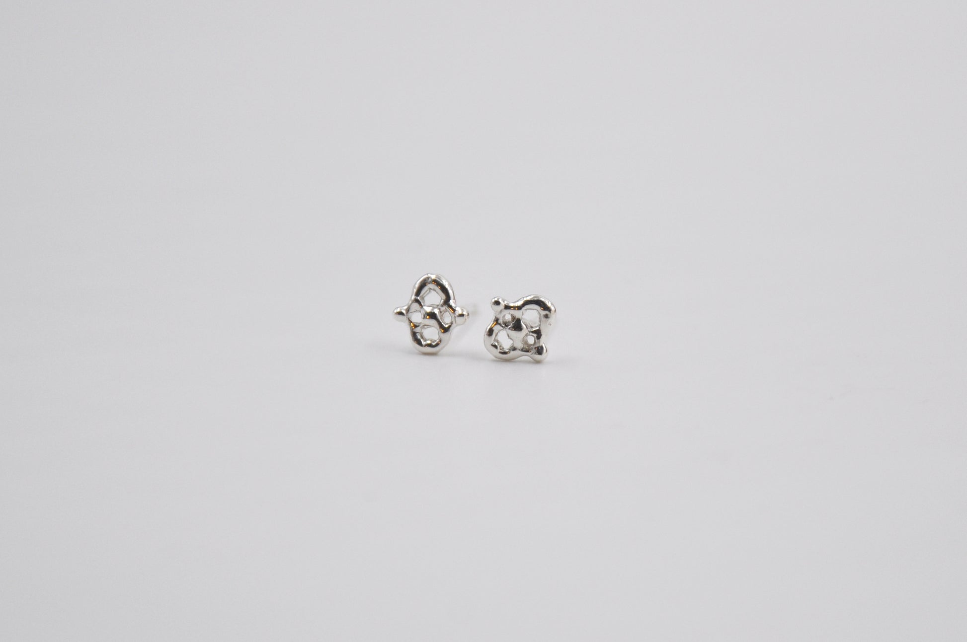 עגילים צמודים של חמסה זעירה ועדינה בעיצוב מעט אלטרנטיבי של הסמל המוכר. באמצעות הצורה האורגנית והכמעט מופשטת שלה, המשלבת סמליות עתיקה עם אסתטיקה ייחודית, החמסה משדרת חוזק והגנה אך גם רכות וקלילות. ניתן לענוד אותם כזוג או כחלק מהסט השלם של עגילי חמסה.