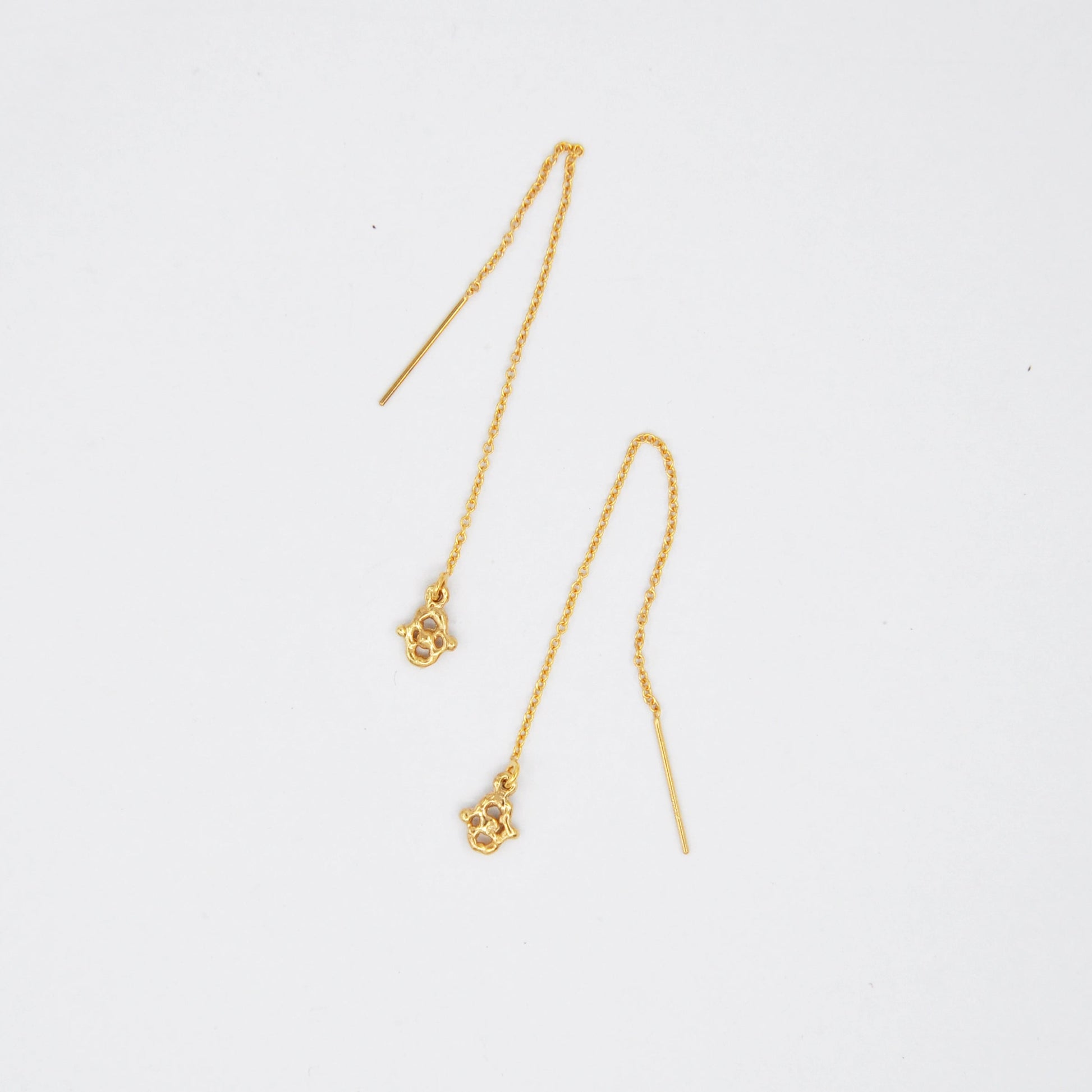 עגילי חמסה זעירה ועדינה בעיצוב מעט אלטרנטיבי של הסמל המוכר. באמצעות הצורה האורגנית והכמעט מופשטת שלה, המשלבת סמליות עתיקה עם אסתטיקה ייחודית, החמסה משדרת חוזק והגנה אך גם רכות וקלילות