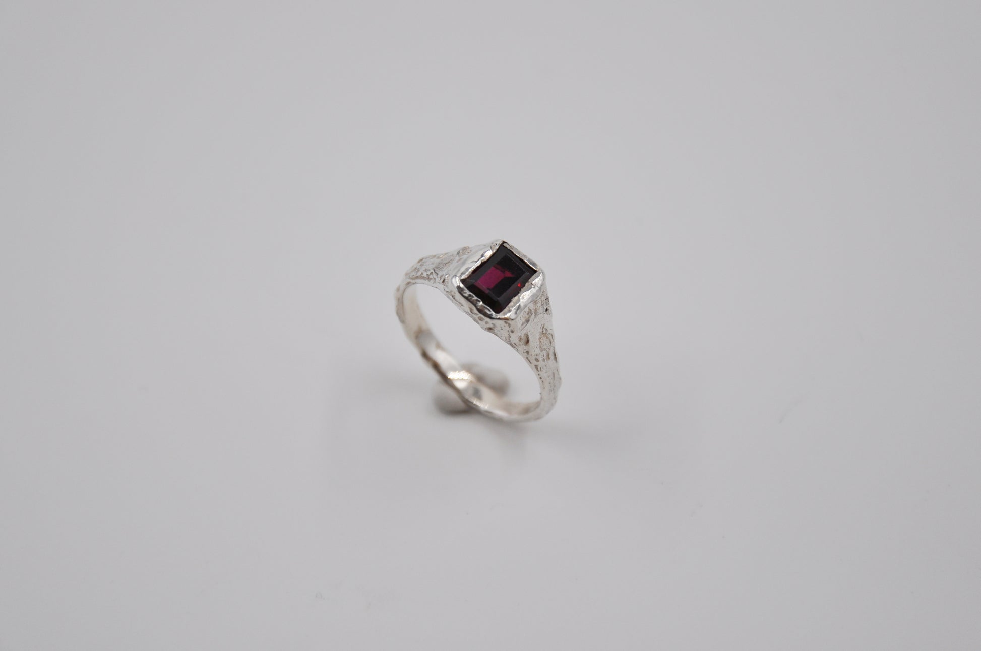 טבעת שמזכירה שבר של סלע עתיק, חצוב מתחת לאדמה. חומר גולמי, מלא זיכרונות מעומק האדמה, ובמרכזו אבן חן מלוטשת. הניגוד בין פני השטח הגסים לאבן המסותתת יוצר שילוב עוצמתי של משהו עתיק עם יופי שנוצר גם הוא עמוק באדמה, אך גולף וטופל בזמנים מודרניים