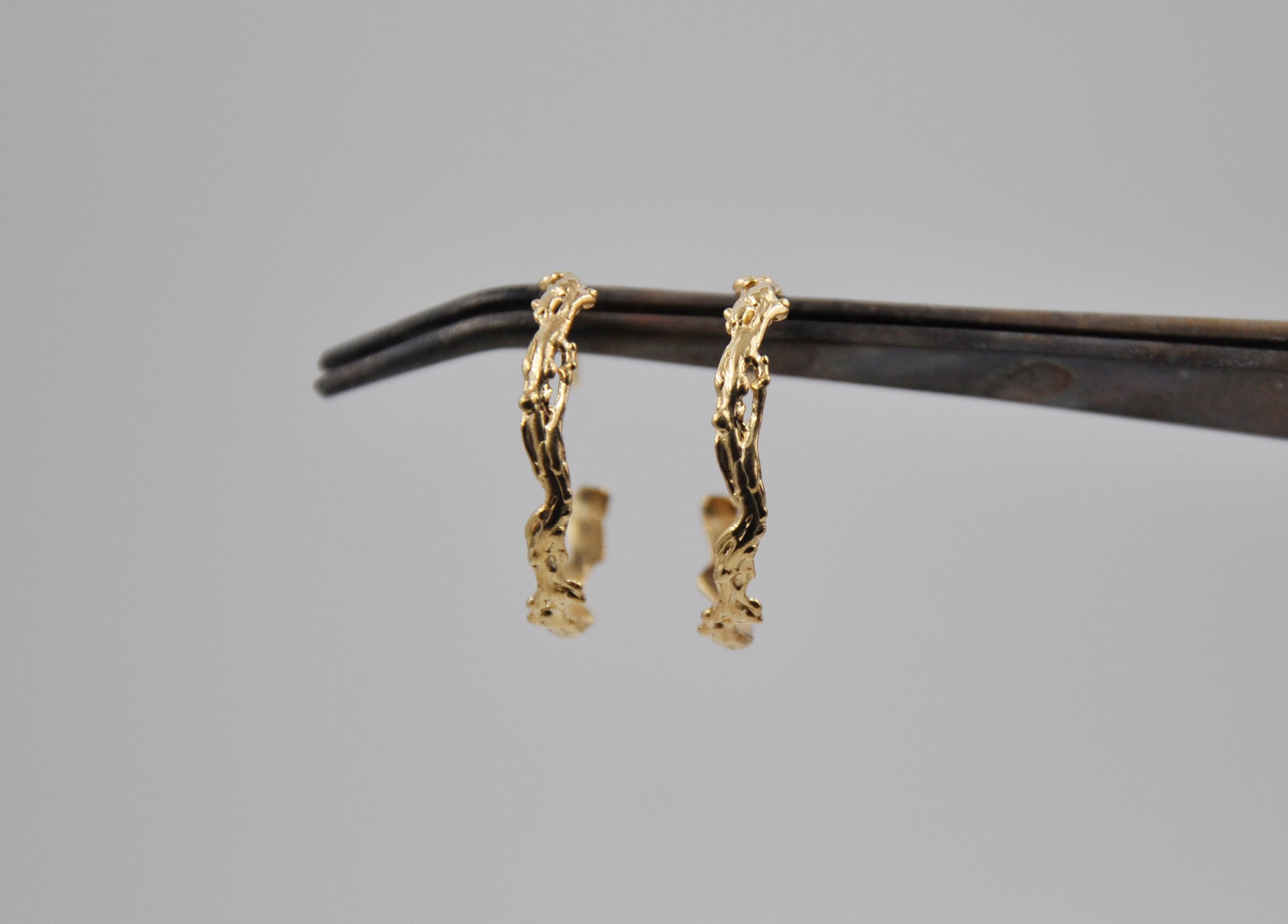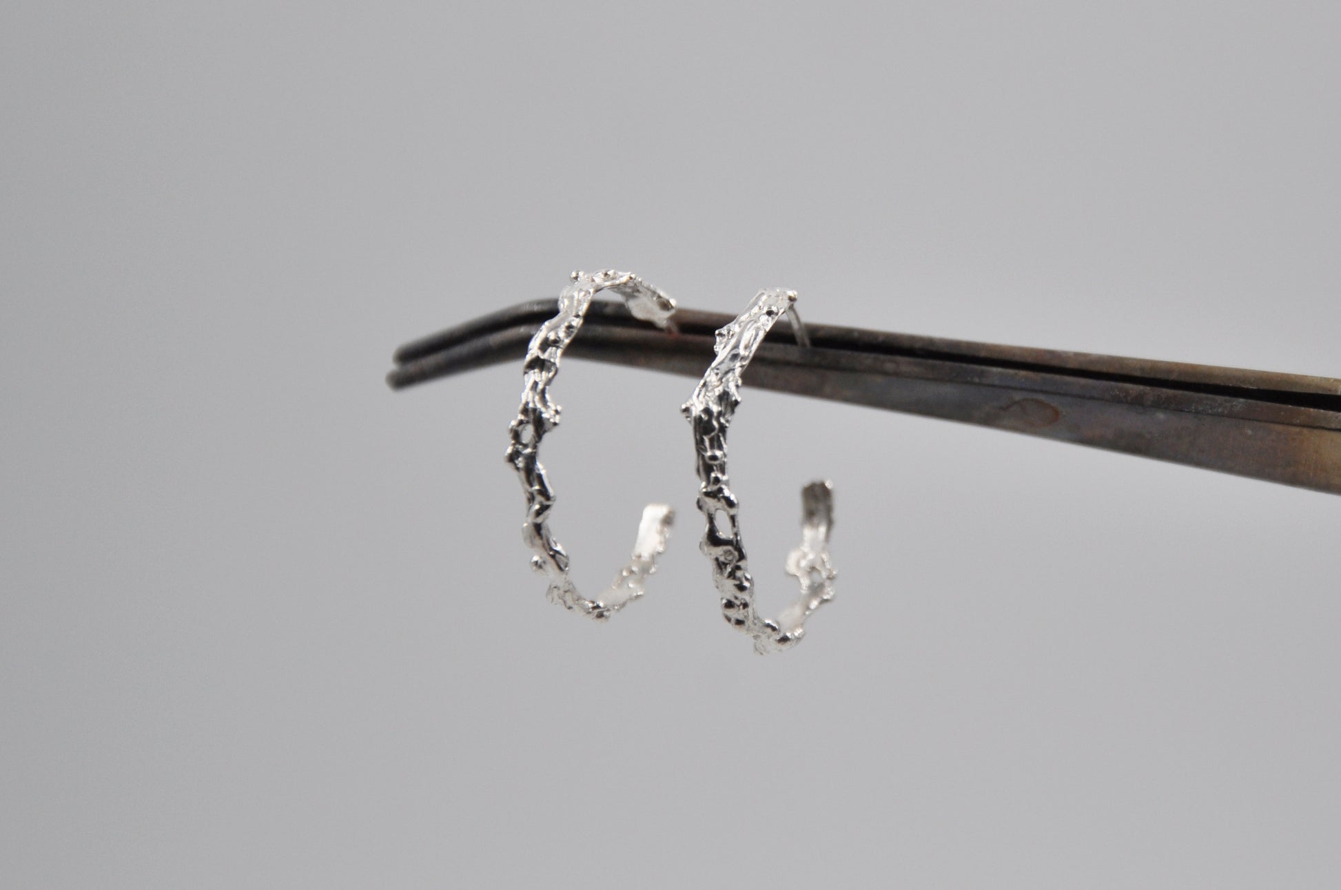 חישוקים עדינים ואדמתיים. המרקם האורגני שלהם דומה לעורקים של עץ, לעוצמה השקטה של משהו שהשתרש עם הזמן. הם מסמלים כמיהה לקרקע ולחיבור למעגל של השקט והפשטות של הטבע.
